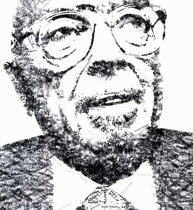 Ahmet Ertegün’ün üne kavuşturduğu ve çalıştığı isimlerle oluşturulmuş bir illustrasyonu.